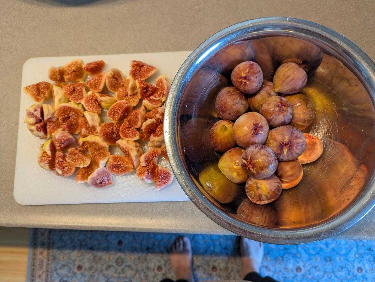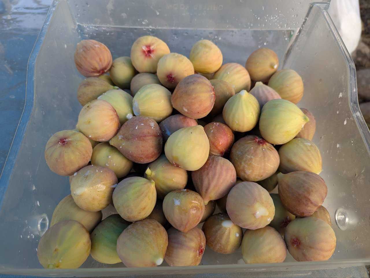 イチジクの収穫を毎日しています。すぐに熟しますので毎日の収穫が必要なのです。イチジクの汁で手が被れましたので、肘までの長いナイロン製の手ぬぐいを購入しました。今日は出荷をせずに自家消費にします。ザルで水洗いをして4分割に切りました。足らい桶に並べて自然乾燥を数日間行います。天気予報を見ると晴れが続くようなので今がチャンス。オーブンで加熱する方法より自然なこの方法が好きです。電気代もかかりませんし。この上に大きな洗濯ネットを被せて小鳥とカラス対策をしました。干しイチジクは栄養価が高く、健康にも良いそうです。完成したら干しイチジクとクルミのパンを作る予定です。残りは冷凍保存し料理にも使います。