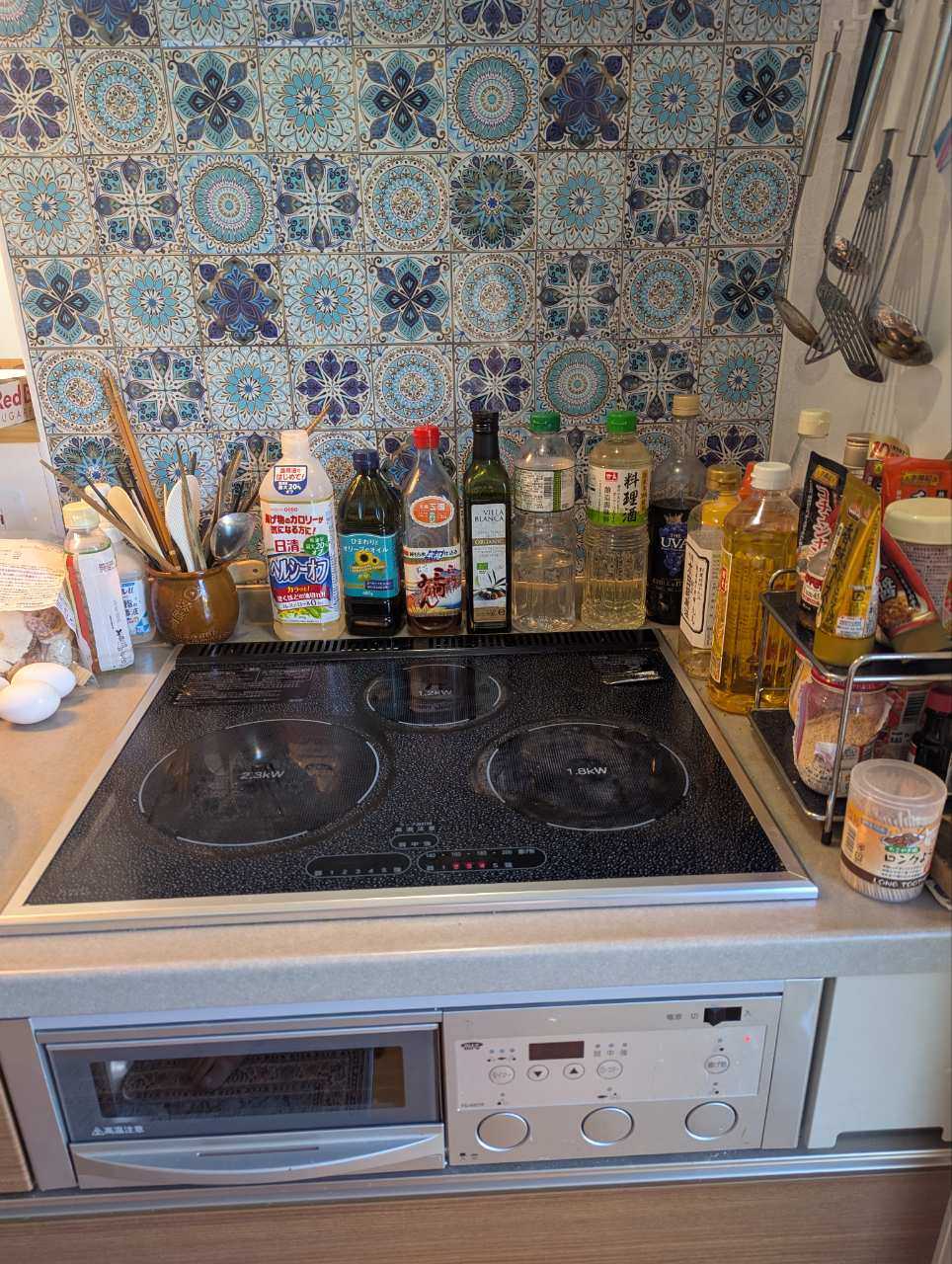 タイルステッカーを調理前の壁面に貼りました。東の方位にキッチンがありますので、相性の良い青緑系統にしました。4種体癖の私は色にこだわりがありますので、配色を楽しみながら貼り付けました。調理台はガスではなくラジエントヒーターです。スーパーラジエントヒーター FG600TR【セラミックヒーター ビルトイン】この商品を知ったのは小田原ハウジングさんの勉強会に参加させてもらたことがきっかけです。電磁波が人体に悪影響があるからと電磁調理器具は敬遠していたのですが、この商品は電磁波が少なく、また遠赤外線で料理がおいしく出来るとのことだったので、ガスの代わりになるとの思いで取り入れました。ガスを引かないことでガス工事の費用が削減できるということもありました。ガスの方が早く加熱するのですが、この部分は諦めました。当初の予算オーバーで削減するとこの商品になったのです。電磁調理器としては高価です。でも一生使うものには初期投資として必要経費としました。電磁調理器のためこの上にホットプレートを置けるので便利です。ガスコンロだったら出来なかったことです。お好み焼きは広島の名物ですが、戦後原爆投下による焼野原から立ち上がった料理なのです。精神を病む前は毎週水曜日をお好み焼きの日としていました。スイスイ帰ろう水曜日ということで夫が定時に帰宅すること。私の職場の休館日が水曜日の施設であったこともありました。今回大工さんが育てたキャベツを使いましたが、そのキャベツを使い切ると3つも余りました。これを冷凍保存します。作り置きをすることで、無駄な調理時間を削減できるメリットもあります。