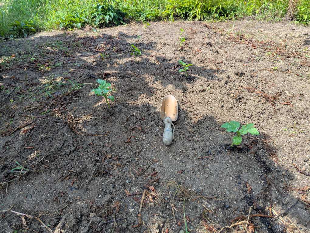 昨年も猛暑が10月まで続きましたが、10月でもコダマスイカが完売しましたので、今年も昨年と同様に育てることにしました。スコップは銅製のものです。使い勝手も良く気に入っています。移植後は枯れ草をマルチ替わりに敷き詰めてたっぷり水を撒きました。本日は新月なので移植に最適な吉日なので、朝は11時30分まで農作業をしました。早朝5時30分から出荷の準備からしていましたので、大変でした。熱中症にならない様にしっかりと水分補給を頻繁にしました。喉が渇く前に水分を取ることが大事なのです。これはスポーツセンターでの体操の指導で利用者の方に助言していたことです。隣の農家さんが水分補給が足らないので、水分と氷が欲しいそうですが、私が居たら差し上げることになりました。外水道は井戸水なので、錆び水が出るので飲料水には向かないのです。