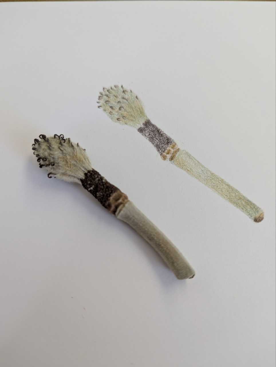 タイザンボクの花芯をスケッチして色塗りをしました。下のものは本物の植物です。つまり見本です。上のものは私の作品です。講師が植物を用意してくれるのですが、好きな草花を選ぶことが出来ます。前回、前々回とハードルの高い植物を選んでしまい、農作業に追われるこの時期には簡単に描くことのできるシンプルな素材を選びました。前回、前々回の作品はスケッチだけ完成していますが、色塗りは未完成なのです。私の新築へのヘリコプター事件があり、塗り絵を落ち着いて色塗りをする気分にならなかったこともあります。ヘリコプター事件の後、不思議な安心感が続いていますので芸術に親しむ余裕が生まれてきました。タイザンボクという名前も初めて聞きましたが、植物名を覚えるのに苦労するのです。大学の研究室の教授が野外活動の専門で自然観察会が定期的に行われていましたが、なかなか植物名と特徴を覚えることができなかったのです。それは今でも変わりません。講師から立体的にする色付けの方法を教えてもらいました。デッサンや色付けをしながら雑談を楽しんでいますが、いろんな情報交換会になっています。ボタニカルアートは山に入って植物を愛でるものに近いのですが、私は大学時代の研究室の自然観察が活かされています。人生無駄なものはないものですね。大学時代は人間関係に苦労はしましたが、研究室の学習内容は役立っています。大学の研究室の自然観察会とキャンプは今の生活スタイルです。卒業論文は数学的な分析力が必要でカメラ2台で3次元分析をしたのですが、天才的な講師に出逢ったと思っています。一般的に体育の教員はバカだと思われているのかもしれませんが、私の大学の体育を学んだ人はバカではありませんでした。大学卒業後に勤めた広島市スポーツ協会の職員も真面目な人ももちろんいました。私は不徳な職員ばかりの中に異動させられて、不幸な事に精神病院に入ったのです。神様に違う道に進むように霊導されたのか、その環境を去る様にさせられたのかもしれません。広島市スポーツ協会の職員も素晴らしい人もいましたので、誠実な人が増えて発展されることを望んでいます。