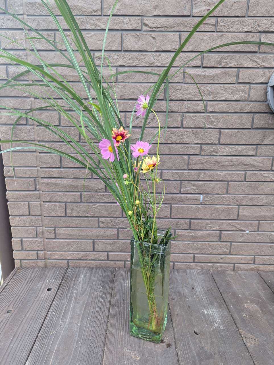 ススキの葉がたくさんありますので、これを活かしてアレンジしました。背景に緑があると味わいが深くなりますね。今日も産直市場に出荷してきましたが、ハンドメイド作品の場所にはご意見箱が設置されていました。回答は1週間後にするそうです。消費者と生産者の意見を取り入れるようですね。場長はいろいろと考えられていると思います。今日は派手なエプロンではなく、いつもどおりの普通スタイルに戻られていました。従業員さんと環境整備を為されていました。こんなに速やかに改善するとは思いませんでした。初回に苦言を呈した若手スタッフとすれ違いに挨拶をしましたが、とてもにこやかな笑顔でした。説明責任を場長が果たしてくれるといいですね。。。開場時刻間もない時で土曜日ですので大忙しです。帰宅後に昨日できなかった白菜の苗を植え付けました。