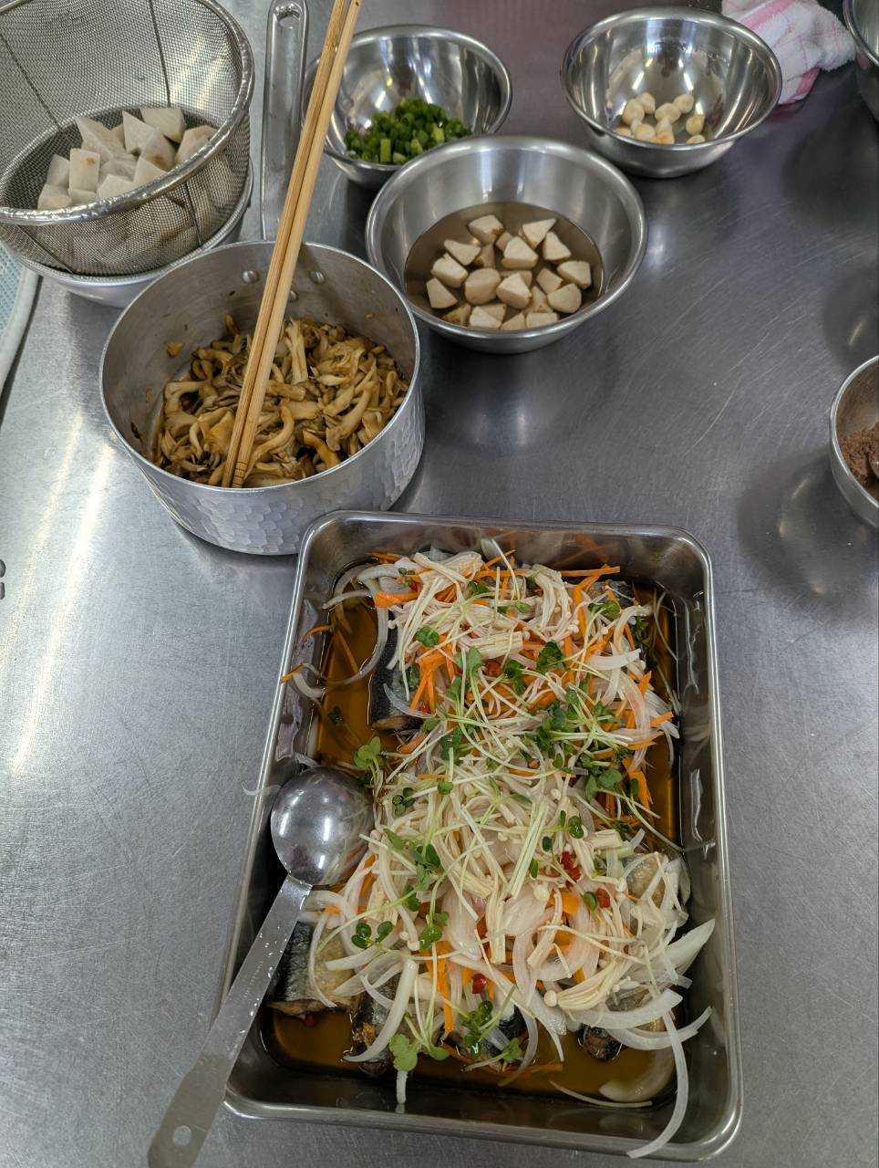季節の料理教室に参加しました。春から参加していますが、夏は猛暑なのでその時期を飛ばし、秋の涼しい時期にまた再開されました。今回はサンマの南蛮漬け、舞茸のごはん、根菜類の味噌汁、チョコレートクッキーの料理です。サンマが今年はとても安価で購入できるということでこの材料にされたようでした。もう1か月早ければ一回り大きなサンマになっていたと卸業者が言っていたそうです。臭みを取るために濃口醤油をサンマに少し掛け、バッドをひっくり返してその上に5分放置。バッドの中に入れると臭みが魚に浸みこむので、あえてバッドの上に魚を乗すことで臭みの液を外に流すためだそうで、目から鱗でした。。。舞茸ごはんも残りご飯があれば、舞茸の味付けをするだけで混ぜでおいしくできるという事も知り、とてもうれしかったです。根菜類の味噌汁について、里芋の購入先も選ばれているようで庄原の産地か愛媛産が硬くて上質だと教えてもらいました。材料にこだわりたいですね。私も農業で里芋が作れるのか研究してみたいです。講師は皮をむぐのも滑らないように洗わずに包丁で皮をむがれていました。私は今までピーラーで削いでいましたが、包丁ですることを学びました。大きなものは皮をむぐ前に切断して、後で包丁で皮を削げばいいのだと理解できました。乱切りも切る度に表にして切るようにすれば、同じ形の乱切りになるのだとこれも勉強になりました。チョコレートクッキーはバターを常温で柔らかくしてから泡だて器で混ぜるのですが、私は家でお菓子を作る時に柔らかくなるのを待てずに強引にヘラで潰していました。これがダメなようで、生地を潰すのではなく切る様に混ぜるのがポイントだそうで。味が違うそうです。。。ああ、ダメな事ばかりしていたのだなと、また反省。。。クックパッドを見て自己流に料理をしていた私ですが、この料理教室に通って料理の奥深さを学んでいます。料理は実験なのだなと思います。工程1つをとっても味に違いが出てくることを学ぶと手抜きが出来ませんね。焦って失敗しないように、時間に余裕を持たせて料理に取り組むようにしたいです。そのためには農作業の効率化を図らないと。。。とてもおいしく出来ました。4班編成で3班は5人ですが、私の班は4人です。私の班は障害者が私を含めて2人。ボランティアさんが1人。臨時職員さんが1人。合計4人です。私はサンマの南蛮漬けを専門に調理しました。私と臨時職員さんは新参者なのでスローペースなのですが、残りの2人はテキパキと作業が進みます。慣れたものですね。皿や調理器具の有りかも熟知されていますし、無駄な作業のないように効率の良く動かれていますから。スローペースの私達は残りの2人の作業を見て、家でもこの作業員がいると料理が捗って良いよねと話しています。家に帰ると自分一人だけで料理をするのですから。。。1人でこの4つの料理をするとどれだけ時間が掛かるのかねっと会話しています。料理は準備片付けを含むとかなり時間が掛かります。もっと言えば材料の仕入れやレシピの研究にも時間が掛かるものなのです。これだけ時間をかけて作った料理を家族が食べてくれなかった時のショックはいかばかりか。。。料理教室は20日にあったのですが、日記は翌日になりました。料理教室のあった20日に夫は朝から不調でしたが夕方になって回復したようです。恨みの念が夫に飛んで来たものと思われます。母も朝から体調不良のようでした。追記:濃口醤油と薄口醤油の使い分けが分からないままの私ですが、今後勉強しないといけませんね。若い頃に料理教室に通っていたらどんなに腕が上がっていたことか。。。共働き夫婦は時間が無いので、専業主婦の特権なのでしょうか?やはり週30時間労働の世の中にならないと、生活の余裕がないですね。嘱託指導員時代は週30時間の労働でしたが、この時間がいいと思います。通勤ラッシュもなくなり、夕飯の支度の時間も取れて美味しい料理を家族にふるまえるのなら、この週30時間労働が当たり前の時代になって欲しいですね。そのためにはやはり最高賃金を定めるしかありません。そうすることで、下級国民にもお金が回り趣味にお金と時間を回せるようになり、精神的安定が保たれ平和な世の中になるのです。