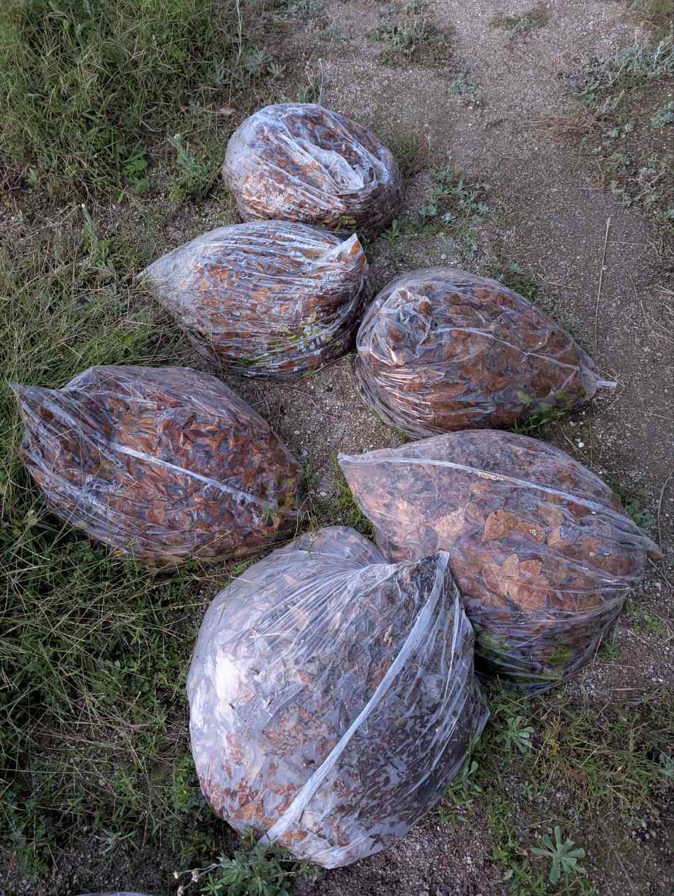 今までは実家の樹木の枯れ葉をゴミとして搬出していましたが、今年からは土壌改良として使うことにしました。ビニール袋に入れて太陽の光に当てて自然発酵させました。というか、作業がなかなか進まずに放置していただけですが、このことで自然発酵することになり幸運でした。鑑賞麦の苗の付近に発酵した枯れ葉を敷き詰めました。直射日光が当たっても土が乾燥することを防ぐことが出来るのではないかと期待しています。秋になりましたので、実家の樹木(名前は不明)に赤い実がなりました。今までは知り合いにプレゼントしていたようですが、好評のようで出荷することにしました。すすきの穂はなくなりましたので、すすきの葉を背景として使いました。紫玉ねぎの苗とにんにくの苗を植えこみました。新月から数日経ってしまいましたが、4週間後になると遅いので満月に近づかないうちに早めに植え付けました。