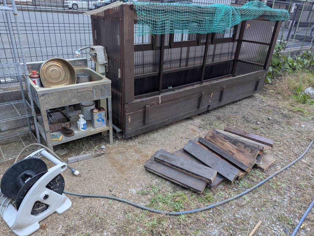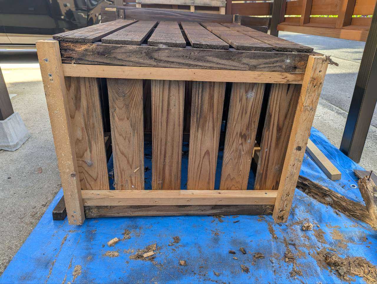 本日予定どおり大きなゴミ箱を果樹園の敷地に移動しました。実家付近の交差点に据え置いていたゴミ箱ですが、レンタカーを借りて搬出を行いました。交差点付近の駐車場は今月末で終了のようです。その駐車場にアパートかマンションが新築されるようです。ますますこの学区の人口は増えるばかりですね。その新築の建設を請け負った業者さんが親切に移設を手伝ってくれました。レンタカーも借りてきてくれたので助かりました。業者さん1人、大工さん、夫、母、私の5人態勢で搬出を行いました。ゴミ箱の下と横面には太い鉄の網があり困惑しました。業者としてはこの網も母の所有物だと思っていたようですが、母のものではないのです。結局、誰の保有物かわからないし、劣化している網を土地保有者に言ったところでどうもできないだろうということで、こちら側が引き取ることになりました。網とゴミ箱を5人で運搬するのですが、重いため事前に大工さんが床部分の板を外して軽量になるように工夫しました。これでやっと5人でレンタカーに乗せることが出来ました。夫が果樹園まで案内して、果樹園の移設場所までまた運搬して終了しました。移設場所は準備が出来ていたのでスムーズに作業が終わりました。業者さんはここまで整備されていることに驚かれていました。1年半年前に完成したゴミ箱ですが、塗装が剥げていましたのでまた重ね塗りを行って劣化を防ごうと思っています。業者さんに大変お世話になりましたので、レンタカー代はもちろんお支払いし、果樹園のイチジクとミカンをプレゼントしました。お世話になった人に果樹園と畑で出来た野菜等をプレゼントしていますが、皆さん喜ばれます。ゴミ箱の移設後は父の手作りの遺品である収納箱の修繕です。底の部分が腐っていましたので、補強のための垂木を加えて打ち付けました。後日、劣化しないために塗装を施して完成予定です。ここにはペイントの材料等を置く予定です。この設置場所をどこにするか検討中です。大型のゴミ箱が欲しい団体があれば無料でお譲りすることになっていますが、お譲りできたらその場所が空きますのでそこに移設する予定です。