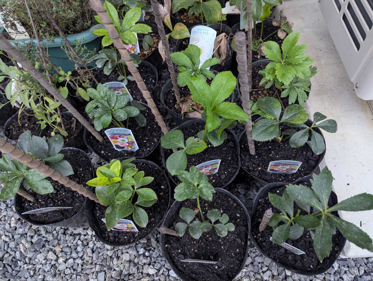クリスマスローズの苗も大きな鉢に移植しました。