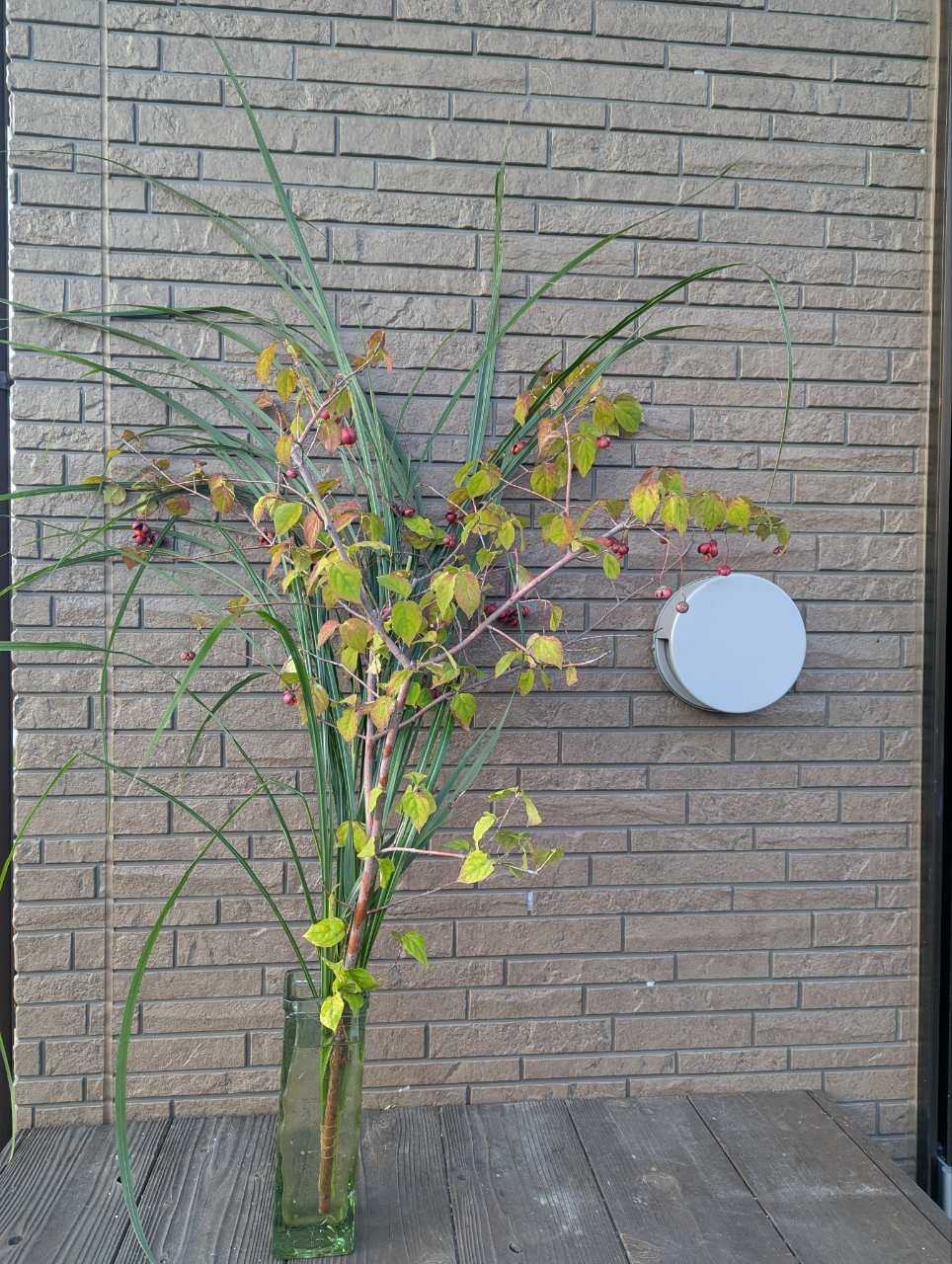 すすきの穂はなくなりましたので、すすきの葉を背景として使いました。