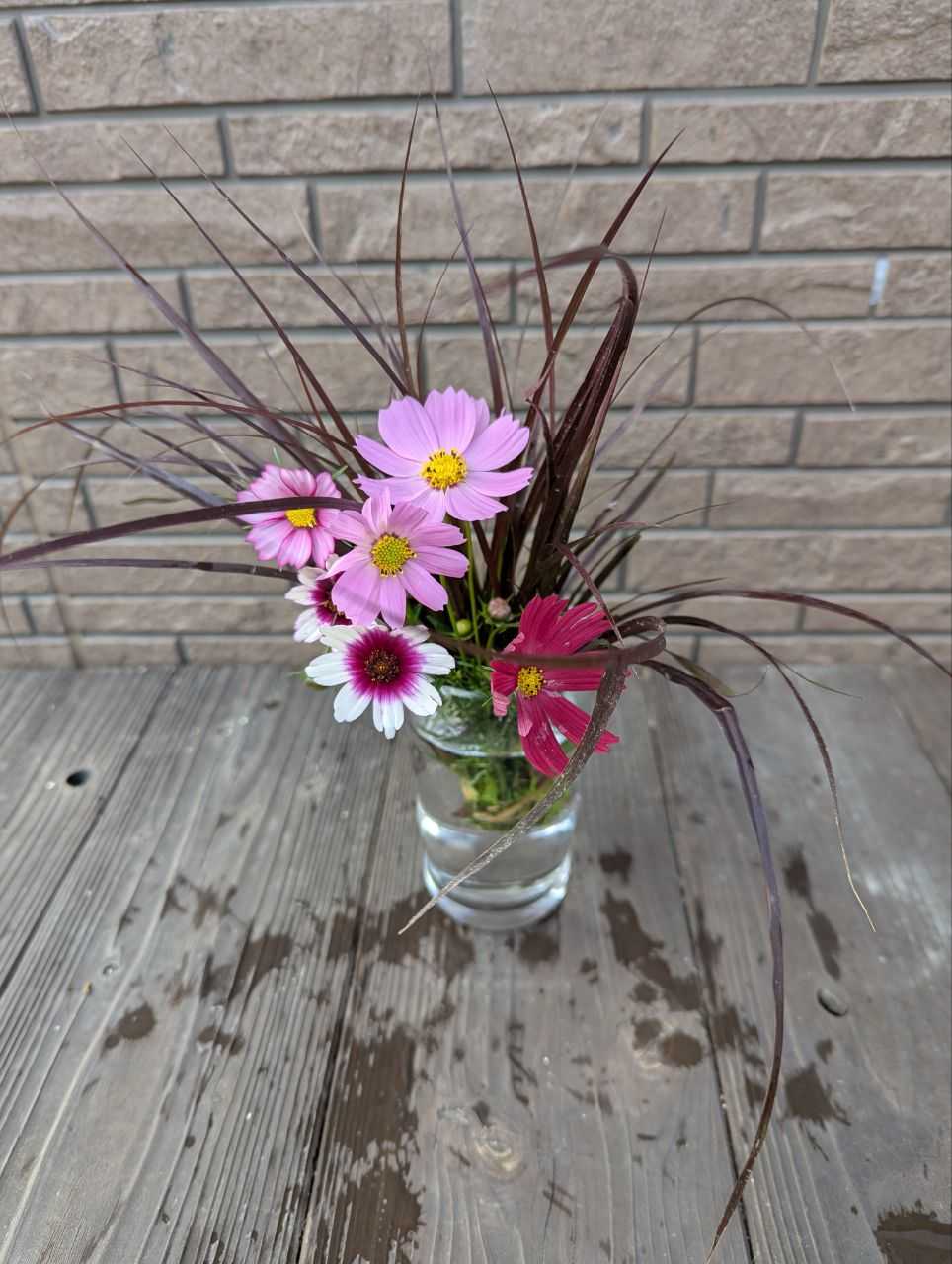 イネ科の植物を一緒にアレンジすると花が引き立ちますね。