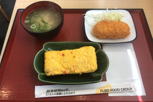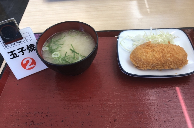 ワタクシ、クリームコロッケとお味噌汁と、玉子焼の札。