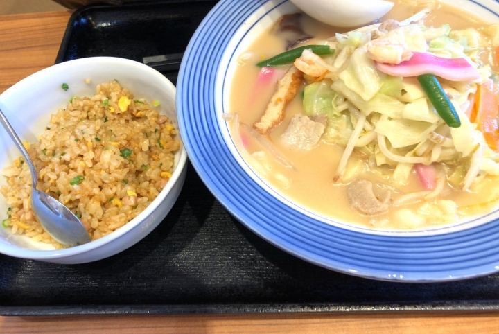 で、オーダーしたのは「長崎ちゃんぽん」と「半チャーハン」。