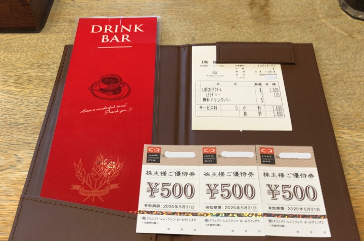 お会計には、株主優待券を使う。