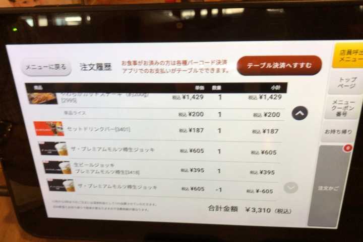 お会計時、注文履歴で間違えてオーダーしてしまったプレモル、消えてた。手書きハート