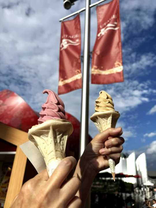 なんか食べ物のパビリオンに入れたので、ソフトクリーム、買ったどー!正しくは、モニちゃに買ってもらった、にゃ。 いつも ありがとね。 座るトコがないと聞いていたけど、外のベンチに座れたよ~ん。さて、チョット元気になって、ウロチョロする。おっ!これは、えーと、マジンガーZさんかにゃ? ちゃう! ガンダムさんだ!一時、ヨコハマにも行ってたんじゃな~い? ずいぶん前ね。 さて、有名そうなパビリオンには入れそうもないので、ちっちゃいトコを狙うべ!次回に続く~。ぽちっとな。にほんブログ村にほんブログ村国内ランキング温泉ランキング日々の出来事ランキング