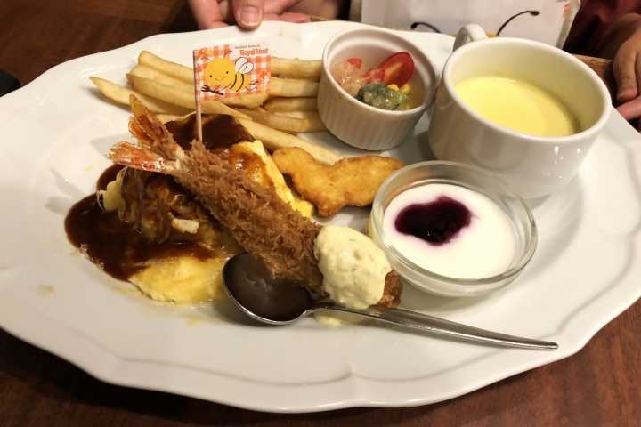 万博会場から地下鉄とJRを乗り継ぎ、JR芦屋駅へ向かったのだ。駅に迎えに来てもらって、夕食はロイヤルホストでR。ミッちゃはキッズメニューの「おこさまオムライス&エビフライプレート」。モニちゃはアペタイザーに「カキフライ」。メインは「黒×黒ハンバーグ ブラウンバターソース 目玉焼き付」のスープ・ライスセットで。ワタクシ、「牡蠣のドリア」。で、ドリンクはモニちゃが「生ビ」の中で、ワタクシは生ビの小。ほんで、スイーツを夕ごはんにするヒトあり。運転手さんでござるにゃ。 あと、パンケーキとドリンクセットもたのんでいたかと。 スイーツぱっかりでモニちゃもビックリなのだ。 ぽちっとな。にほんブログ村にほんブログ村国内ランキング温泉ランキング日々の出来事ランキング