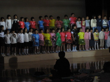 今日は 長男の通う小学校で「学習発表会」なるものが 行われました! 以下、報告!!体育館での”舞台発表” と 各教室での”展示発表” の 二部構成となっています・・前半 長男達2年生が 舞台で発表したのは 歌と朗読でおりなす 音楽ものがたり「スイミー」・・ピンクのビニール袋を着て かわいらしく ”いそぎんちゃく”に・・ほのぼの かわいらしい 音楽劇でした♪後半 2年生の教室では 愛・地球博 を ややパクッた(つもりと担任は言っていた) ”ふれあいしぜん館”という展示・製作スペースが開催されました子供たちが拾ってきた自然のもの(どんぐり・椿の実・すすき・松葉)を利用した おもちゃ作りコーナーですそれに食いついたのが めずらしく学校に連れて来てもらえた 次男!”あれもこれも・・”と かなり興奮!! でもお兄ちゃんに教えてもらって なんとか ”椿笛”と”どんぐりのやじろべえ”を完成させ 大満足!それにしても じっとはしてない下二人・・ 学校内を探検、探検・・とうちゃん・かあちゃんは 疲れたよ・・