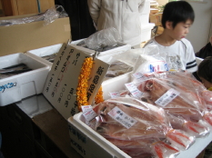 「そういうわけ」 で昨日は 干物を売りに行ってきました前日に急に 「行って来い!」 とお達しが・・営利の全く絡まないサービス業 の経験しかない私にはかなりの プ プ プ プレッシャ~ (T_T)ですがですが ありがとうございます♪ 皆様のおかげで かしかめ・タカベ を売り切り アジもほぼ完売!それも 右手で干物を袋詰め 頭で値段を計算し左手で脱走をはかる三男の首根っこを捕まえ 脚でケンカ中の長男&次男を蹴っ飛ばしながら!!どうだ!かしかめん!! あたしだって やるときゃ~やるよ~ ヘロヘロ~〃´ー`)=3 ホッ楽しかったけど 疲れたぁ~次回は お客さんと値引き合戦ができるくらい 余裕が持てるよう がんばりまっす!