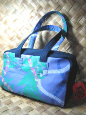 だから あたしが更新できる時にやれないと こういうことになっちゃう・・^^;きのうは 結局何だか忙しく PC開く暇なしでした毎度毎度のことですが コメントのお返事もまだでゴメンナサイm(__)m改めまして ストリングカレントさんからいただいた ハワイのお土産の生地で欲しかった秋用のバッグを作りました♪相変わらず 紫が上手く映りませんが とっても素敵な色合いです秋物 ということで 暗いかなぁとも思いましたが デニムとあわせました こんな感じでございます^^ゞ参考にしたのはこの本 好みで80%縮尺しました なので中途半端な長さのファスナーが必要になったり 色々と計算の合わないことも・・そこで 洋裁プロの母がいるうちに 急いでミシンを引っ張り出しました随所に プロ直伝の技! というか ごまかしの術 が隠れています^^ゞおんなじ組み合わせで エプロンも作ろうと思っていたのですが一つ誤算がありました・・ それは・・?見て見て~!! 指が真っ青 聞けば 母「そうなのよ このデニム 洗濯しても色落ちしないけど 触ってると付くんだよね」え~!! 先に言ってよ・・ って感じですがバッグは直接体(洋服)に触れる側は すべていただいた生地なので とりあえずホッ・・ですバッグの中身が青くなってしまわないように 残った生地で”バッグインバッグ”って言うんだっけ? 作りましたエプロンの方は・・ もう裁断しちゃってるし 何かまた布 探しましょう^^;