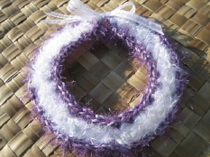 先日は次男のお誕生日にお祝いのコメントを寄せてくださり 皆さん MAHALO~♪次男はプレゼントの『くま』をすっかり気に入ってくれた様子です そうそう! くまの材料はじめ 色々使い走りをしてくれた母に 感謝してます!くまを作るのに 夜更かししたのがたたったのか連日 夜も9時になるともう 眠くて眠くて・・・・ 一体どうなっちゃってるんでしょう^^;最近はめっきり?すっきり 回線も調子いいし ブログ更新もOHANAの皆さんのとこへ遊びに行くのもサボるつもりは 全然ないのに 毎日睡魔に負けてました~アハハ・・^^; さて さて さて さて・・超×2 ホヌペース それも かなり高齢?ってくらい ゆっくり 時間かかりましたがレイができました♪フクシア のレイです(参考にしたのは THE GUIDE TO MAKING Ribbon Lei)このレイは エンジェルストランペットをいただいたお礼にOHANAのLOMILOさんに 贈らせていただこうと思って作りました(我が家のエンジェルちゃんも とっても元気です 写真撮るの忘れちゃったけど・・^^ゞ)LOMILOさん と言えば エンジェルちゃんの印象が強いかもしれませんがかなり前に あたしはフクシアというお花を はじめて見たのがLOMILOさんのブログだったんですそれで あたしの中では フクシア=LOMILOさん という図式が成り立っていますだからね! 本とは変えて LOMILOさんのフクシアに色を合わせて作ってみましたこのレイは 作り方が面白かったですクロシェット カット&ソー 手編み の技術が全部入っています ↑こんな風に カット&ソー したお花たちを 編んだヤーン&ラットテイル に貼り付け裏から 手編みの ブレイド でふたしていますだから裏から見てもきれい♪ っていうかちょっと面白い! 表♪ 裏♪ 出来上がってみると けっこう個性的な感じのレイなの・・こういうのって 好き嫌いがはっきり出そうLOMILOさん 気に入ってくださるといいんだけど・・あした発送しようと思ったら あした 旗日だ・・^^; 郵便局お休み LOMILOさん 今しばらく お待ちくださいね~
