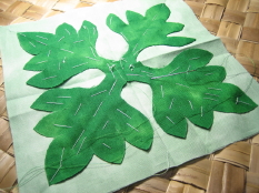 パターンは エリザベス・ルートさんの『The Pillows to Patch Quilt Cillection...the Hawaiian Way』より 『Breadfruit』 です