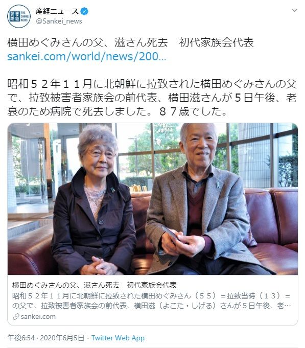 みなさまこんにちは。突然の訃報が飛び込んできました。本当に驚きました。亡くなってからお悔やみを言う前に、モリカケ桜やる暇があったら、審議拒否する暇があったら、どうして今までやってこなかったんでしょうか?その為の国会議員の給与であり、文書料等の支払いですよ。しかし、一番許しがたいのはこの方です↓さすが北朝鮮シンパ。男女差別とか、外国人差別は叫んでも、罪のない日本人が、ある日突然連れ去られ、日本に帰してもらえない。という人権侵害には言及しない日本の人権団体。私も子供の帰りが遅くて、心配で迎えに行ったことが何度もありますがそのまま外国に誘拐されたら・・・何十年も生き別れになったら・・・と思うといたたまれません。拉致被害者を取り返すために例えば民潭や総連の資産の差し押さえとか通名の廃止とかできることはいくらでもあります。Twitterでお悔やみを述べるだけでなく、ぜひとも動いてもらいたいです。