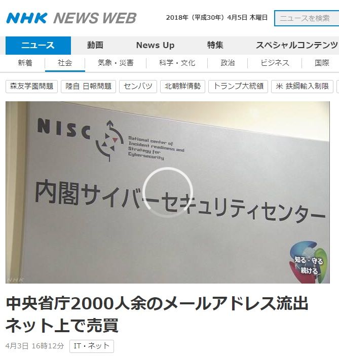 皆様こんにちは。2年前の話ですが、こんなことがありました。 ↓ ++++++++++++++++++++++++++++さて、2018.4.3:NHKニュースより(※2020.6.7現在:この記事は削除され見ることができません)サイバー攻撃の新たな危険が明らかになりました。中央省庁の職員延べ2000人余りのメールアドレスが、外部に登録したパスワードとともに流出してインターネット上で売買されていることがわかり、「内閣サイバーセキュリティセンター」はすべての省庁に対して緊急の注意喚起を行いました。情報流出は、ことし2月に何者かが闇サイトに膨大なデータを掲載したのをきっかけに判明しました。イスラエルにある情報セキュリティー企業の「KELA」がこのデータを分析した結果、外務省、経済産業省、総務省、国土交通省など中央省庁の職員延べ2111人分のメールアドレスと、会員制のサイトなどにログインするためのパスワードが含まれ、すでに何者かによってこれらの情報がインターネット上で売買されていることも確認されました。これらの情報は、業務中にアクセスした弁護士会のホームページや通販サイトなど、公用のメールアドレスを使ってユーザー登録した先から流出したと見られているほか、過去に流出した古い情報も含まれているということです。これまでのところ被害は確認されていませんが、政府機関へのサイバー攻撃を監視している「内閣サイバーセキュリティセンター」は、3日、すべての省庁に対して緊急の注意喚起を行ったということで、NHKの取材に対して「以前からパスワードを使い回さないなどの対策を取っているが、改めて周知して対策の徹底をはかりたい」と話しています。KELAのドロン・レビットさんは「ハッカーたちは多くの個人情報を漏らすことで闇市場での信用を高めて値段をつり上げようとしており、個人情報が狙われる傾向は今後も続くだろう」と話しています。”標準型攻撃で被害拡大の恐れも”今回、流出が明らかになった情報が悪用された場合のリスクについて、情報セキュリティーに詳しい社会情報大学院大学の白井邦芳教授は、特定の省庁の職員を狙って偽のメールを送りつけ、ウイルスに感染させて機密情報を盗み取る「標的型」と呼ばれるサイバー攻撃のほか、中央省庁の職員を装った詐欺やサイバー攻撃の危険性を指摘しています。さらに、外部のシステムなどで同じパスワードを使い回していると認証を突破されてしまうほか、違うパスワードを使っていても似たような特徴がないか類推されるおそれがあるとしています。白井教授は「犯罪者が情報を手に入れるとどのような立場の人のメールアドレスかを調べて標的型攻撃などを仕掛けるおそれがあり、被害が大きくなることは十分に考えられる」と指摘しています。一方、今回、流出が明らかになった情報の中には中央省庁のほか大手企業や大学、それに個人のものも含まれ、日本人とみられるメールアドレスとパスワードは200万件にのぼっています。白井教授は、「会員制のサイトなどにユーザー登録する際はクレジットカードの情報などを必要以上に入力せず、パスワードも複雑にしたり定期的に変えたりするなどの注意が必要だ」としています。本当に日本政府、霞が関のセキュリティの甘さには閉口します。2020.6/1からLINEがソフトバンクの傘下に入りましたけど、ちょうどそれくらいから、身に覚えのない詐欺メールや課金メールが再び届くようになってます。(できるならLINEを止めたいんですが、事情があって今は退会できず、最低限の会話のみ使っています)LINEPayなどのお金が絡むことをしている皆さんは、早めに残高を使い切って、できる限り引いたほうが賢明だと思いますよ。厚労省はまだLINEでコロナの感染調査をしているんでしょうか?自分達が被害に遭ってもまだ気づかない 呑気さ。既に今、情報戦争の真っ只中に私達はいます。ANTIFAのデモもそうですし、国内のメディアも大手、中堅は(産経も含めて)まともなところは一つもありません。アメリカでもやってないクロスオーナシップ制度を日本のマスコミは取ってます。つまり、TV局と新聞社の両方で連動した情報を流すのが可能。(↑外資比率のデータは2016年時です)先の第二次世界大戦後、GHQの占領政策で徹底的な情報統制が行われ、GHQの意に沿わないものは潰されますから。NHKだって「真相はかうだ」でやりましたしね。 水間政憲(4)台本「真相箱」-真相はかうだ-NHK洗脳ラジオ放送洗脳ラジオ放送(15分ほどの動画です)こんな状態で日本の国益と国民を守る報道ができるわけがありません。産経はまだマシな方と言えなくもありませんが、皇室記事などここでも指摘したようにしれっと嘘をつくときもあります。こないだの黒川検事の話だって、朝日と一緒に賭けマージャンに参加してましたしね。https://twitter.com/Ametalk2/status/1269542182404276229?s=20