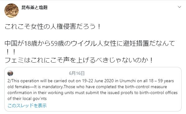皆様こんにちは。中共のジェノサイド(大量虐殺)のお知らせです。女性の人権だとか、性的搾取だとか言ってるフェミニストの皆さん↑の中国の蛮行にはどうして声をあげないんですか?強制的な避妊手術って!!