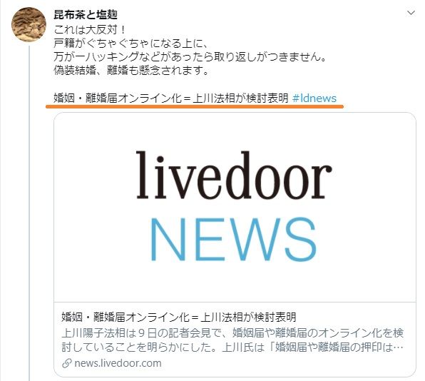 皆様こんにちは。河野太郎行革相が「はんこレス」を推進しているようです。パラパラとしか報道されませんので、河野行革相のHPでご確認ください。(詳しくは下記サイトをご参照ください)河野太郎公式ブログ「ごまめの歯ぎしり」より・2020.9.28:行政の手続きにおける押印の廃止・2020.10.01:押印が必要な手続きそれに呼応してなのか、法務省の上川法務大臣が戸籍に関わる押印の廃止を言い出しました。(2020.10.9:日本経済新聞より一部抜粋)上川陽子法相は9日の閣議後の記者会見で、婚姻届や離婚届の押印廃止を検討していると明らかにした。行政手続きのオンライン化を進める考えも示した。「婚姻届や離婚届の押印も含め、様々な行政手続きがある。そのオンライン化の検討を進めている」と説明した。婚姻届や離婚届は認め印でも可能で、廃止できると判断した。法務省によると、婚姻届や離婚届を含めた戸籍関連のオンラインによる届け出は2004年4月から制度上可能となったものの、現時点で導入している市区町村はないという。上川氏によると、法務省は所管する行政手続きのうち、婚姻届など35件の手続きについて押印を廃止する方向で検討している。 (全文はソースでご確認ください)私は、是々非々な対応ですが、こと戸籍に関する押印の廃止には断固反対です!(下の画像クリックでニュースソースにリンクします)例えば婚姻届(画像は京都の例です。)結婚する本人の名前だけでなく、本籍、住所、両親の名前、続柄、証人(右側のページ)など、たくさんの記入欄、押印欄があります。これ、デジタル化したらどうなるか?今、ブロックチェーン技術などは、まだ官公庁のオンラインシステムで使われていませんよね?。また、霞が関の業務を民間に委託した結果、年金機構や国税庁からマイナンバーと住所氏名、納税額などの情報が既に中国や韓国に漏れています。てことは、万が一ハッキングされたら、戸籍がグチャグチャになりますし出自を証明するものが何もなくなるのでは?また、オンラインの届け出が どういう方式になるのかわかりませんが、紙の結婚届と違って、オンラインで二人一緒に入力するとは限らないのでは?証人は不要になるのかしら?これって、夫婦別姓とリンクしたら本当に怖いことになりますよね。誰が誰と結婚してるのか、子供の両親が誰なのか調べるのに手間取ります。婚姻や離婚がハンコレスになれば相手の住所氏名等々さえわかれば、ストーカーが勝手に自分と結婚させたり、親が気に入らない子供の結婚相手を勝手に離婚させたりできるのでは?それに、欧米のサイン文化では、公式文書に使われるサインは、日本の印鑑証明のように本人のサインとして登録されています。まさか印鑑廃止して、国民全員のサインを登録するの?高齢で手が震えたり、ペンを持つ手にけがをしてサインが書けなくなったらどうするのでしょうか?(↑画像クリックで、福岡市博物館の金印のページにリンクします)印鑑は、昨日一昨日始まった制度ではありません。古くは卑弥呼の時代、大陸から伝わった「漢委奴国王」の金印から千年以上にわたって、わが国では文化として受け継がれてきていますまた、職人が彫った印鑑は、線の太さ細さが違うので、それ自体がオリジナル。印鑑登録をし直せば、定期的に財産を守るカギ(実印)を変えることが可能。そもそも、一つの家に名字のハンコは複数ありますよね。どれが実印か、一見ではわからない。アナログにはアナログのよさがあります。大事なのは、千年以上受け継がれてきた文化の有効性(有効だから守られてきたわけです)と、デジタルの複合でしょう。アナログにもデジタルにもそれぞれ長所、短所があります。官公庁でデジタルを使うなら必ずブロックチェーンと併用するべきです。望ましいのは「アナログ」と「デジタル」の両立だ!と思われる方は、政府への意見にご協力をお願いします。(↓クリックでリンクします)首相官邸公式HP:ご意見・ご感想(まめはなさん、文例の作成にご協力ありがとうございましたm(vv)m)(文例)・河野太郎行革相が「はんこレス」を推進し、上川法務大臣が戸籍に関わる押印の廃止を言い出しましたが、反対です。 戸籍がぐちゃぐちゃになる上、万一ハッキングなどがあったとき、取り返しがつきません。偽装結婚・離婚も懸念されます。止めてください。・河野太郎行革相が「はんこレス」を推進し、上川法務大臣が戸籍に関わる押印の廃止を言い出しましたが、反対です。 空き家の所有者不明が解決されるのはよいことですが、成り済ましによる被害が防げなくなります。・「はんこレス」、戸籍に関わる押印の廃止に反対します。 婚姻、離婚など第三者に公に法的に認められる証拠でもあります。 勝手に書き換えられるようでも水に付けたら消えるようでも困ります。・「はんこレス」、戸籍に関わる押印の廃止に反対します。 結婚、離婚、出生届、死亡届については紙とハンコの文化を守るべきです。 それより事