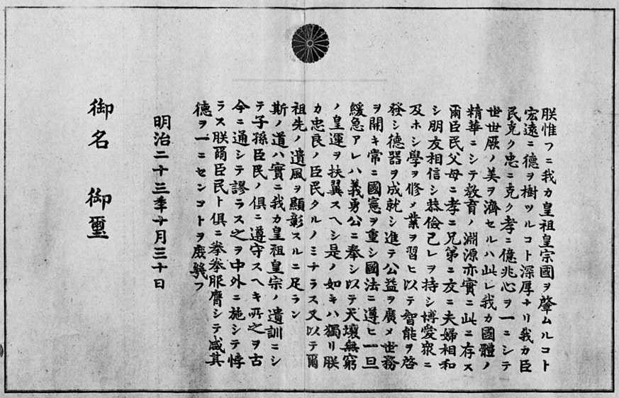 皆様こんにちは。今日は教育勅語の日です。私が子供のころは、自虐史観真っ只中の歴史教育(義務教育)だったため教育勅語はさぞかし悪いもののように習いました。今も、レフトさんたちの間では、軍国主義の日本を象徴するもののような扱いを受けています。でも、「どんなことが書いてあるか知ってから批判しても遅くないんじゃない?」ということで、簡単に説明しますね。教育勅語には「12の徳目」があります。1【孝行】……親孝行をしましょう。2【友愛】……兄弟、姉妹は仲良くしましょう。3【夫婦の和】……夫婦は仲良くしましょう。4【朋友の信】……友達は互いに信じあって付き合いましょう。5【謙遜】……言動を慎みましょう。6【博愛】……広く、すべての人に愛の手を差し伸べましょう。7【修学習業】……勉学に励み、手に職をつけましょう。8【智能啓発】……智徳を養い、自分の才能を伸ばすことに努めましょう。9【徳器成就】……人格の向上に努めましょう。10【公益世務】……世の人々や社会のためになる仕事に励みましょう。11【遵法】……法律や規則を守り、社会の秩序を守りましょう。12【義勇】……正しい勇気をもって、国のために真心を尽くしましょう。・・・えーとどこに批判されるべき点があるのかわからないんですが??そういえば、教育勅語を批判するから、教育勅語の逆はどんなことか?という意見もあったので、教育勅語の逆はどんなものか出してみましょう。ヤバイやつやんwwwさて、前からこのブログでも取り上げている通り、戦後、日本はGHQによって20万人もの公職追放がされ、その時に国民のためになる役所も解体されました。内務省などがその例です。公職追放された教員でも、若い人は言いたいことを飲み込んで上(主に共産主義者らが後釜に入り込みました。)に従うことで自分の生活を守るために学校に戻った人もいましたが子供の恩師のお父様のように「定年まで後数年。」というベテランの先生の中にはそのまま退職され、農業などで自給自足の生活をされた方もいました。それ以来、日本の教育は赤く染まっています。「学校に任せていれば安心」な時代など、もうとっくに過ぎ去っています。