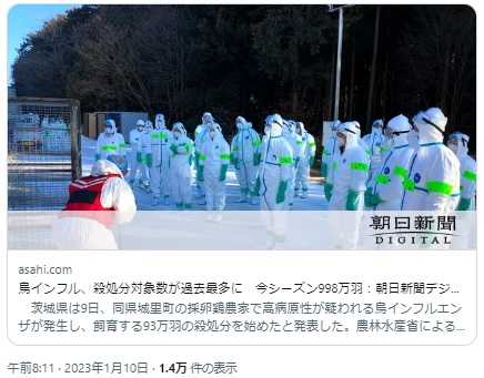 皆様こんにちは。鳥インフルエンザによって、国内の鳥およそ1000万羽近くが殺処分されています。これは過去最多数だそうです。(↓クリックでソースにリンクします)鳥インフル、殺処分対象数が過去最多に 今シーズン998万羽(朝日新聞デジタル:2023年1月9日 13時39分)農林水産省によると、これで2022年シーズン(昨年秋~今年春)の殺処分対象は計998万羽となり、20年シーズンの987万羽を超えて、過去最多を更新した。今季は23道県で56件の感染が広がり、20年シーズンの18県52件を上回っている。ところで皆さん、鳥インフルエンザってどんな病気かご存知ですか?【農林水産省HP】鳥インフルエンザについて知りたい方へ赤枠の中にご注目我が国ではこれまで、家禽肉や家禽卵を食べて、鳥インフルエンザウイルスに感染した例は報告されていません。なお、鳥インフルエンザウイルスは加熱すれば感染性がなくなります。万一食品中にウイルスがあったとしても、食品を十分に加熱して食べれば感染の心配はありません。家禽卵は、国内では生で食べることを考えて生産されていますが、不安な方や体調の悪い方は加熱(中心部70℃、瞬間)することをお勧めします。ねえねえ、なんで鳥インフルに感染した鳥が見つかっただけで周辺の養鶏で大規模に殺処分が行われるの?完全に風評被害じゃないですか?鳥だって生き物。ヒナが大人になって、採卵できるまでには150日ほどかかります。今、卵が高騰していますけど農水省のこの文書見たら、防疫のために殺処分しているのであって人に感染したりするんじゃないんだったらここまで大規模な殺処分は必要ないのでは??高病原性というのも鳥に対してであって、人間に対してではない。と農研機構のHP(リンク先)に記載があります。ここから先は、体験した人でないとわからないと思いますが輸入の肉(牛、豚、鳥)焼いた時に薬臭いにおいがするときがありませんか?以前、アメリカ産牛肉、カナダ産豚肉、デンマーク産豚肉を焼いた時ものすごく薬臭いにおいがして食べられなかったことがあります。以来、輸入肉は買わないようにしています。唐揚げ店の増加、そしてスパイスなどの効いた鶏肉料理・・・なんだか気になりました。生き物の命をいただいて生きているということを私達はもっと意識すべきですし、昔言われていたように「食べ物を粗末にするべきではない」と思いますね。農水省、命を育てる養鶏、畜産、自然を相手にする農業っていうものを安易に考えすぎですよ。人間が大人になるまでは20年。牛や豚、鳥だって大人になるまでは時間がかかるんです。・・・皆さんにもこれを機に、身のまわりの食べ物について、ちょっと考えていただきたいです。