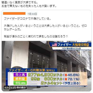 皆様こんにちは。寒いですねぇ。先週末から、スイスのダボスで「世界経済フォーラム(WEF)」が始まっています。日本からは河野太郎デジタル大臣、西村康稔経済産業相、日銀の黒田東彦総裁、新浪剛史サントリーホールディングス社長らの参加出席されているようですね。ちなみにスイス軍が警備に動員されているようです。これこそ、私達が一番知っておかなければならないものなのにほとんど報道されません。そんな中ツイッターで、ファイザーのアルバート・ブーラCEOのインタビューが流れてきました。ファイザーと言えばコロナワクチンで大儲けした製薬会社であり、ワクチンの代金が払えない国には、「代金が払えないなら港や空港をよこせ」と言っていましたね。このブログでも過去に取り上げました。その後、コロナワクチンに帆船を防ぐ効果がない事ばかりか、心筋炎が起こることなどが、どんどん明るみに出てきました。せっかくなので、振り返っておきましょう。さて、ここからが本題です。ダボス会議に出席した、ファイザーCEOのブーラ氏(ブルラ氏)が屋外で独立系のメディアからインタビューをされている動画です。。削除される可能性もありますから、早めにご覧ください。そしてこれが世界の認識です。報道しない日本のマスコミがいかにダメダメか、情報操作されてるかよーく分かりますよ。画像クリックでソースの動画ツイートにリンクします。ワクチンをうってる人も、そうでない人も納税してますでしょ。日本国政府や厚労省が勝手に契約して、湯水のように税金をこの会社に支払ってるんだから税金の使い道がこんな風になってることは見ておいた方がいいと思いますよ。