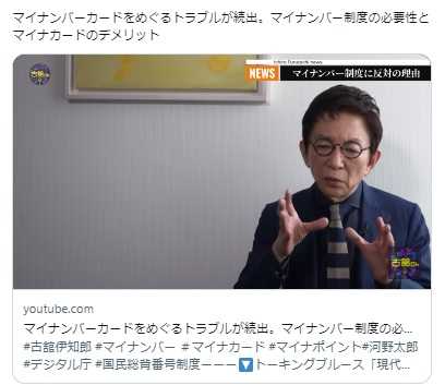 皆様こんにちは。マイナンバーカードというシステムと、マイナンバーという制度 の違いについてきちんと理解しましょう。古館一郎チャンネル様の転載です。マイナンバーカード推進派も、反対派も一度この動画を見ていただきたいです。↓クリックで動画にリンクします。マイナンバーカードをめぐるトラブルが続出。マイナンバー制度の必要性とマイナカードのデメリット税の公平性と担保すると国税局は言いますが、本当に公平でしょうか?
