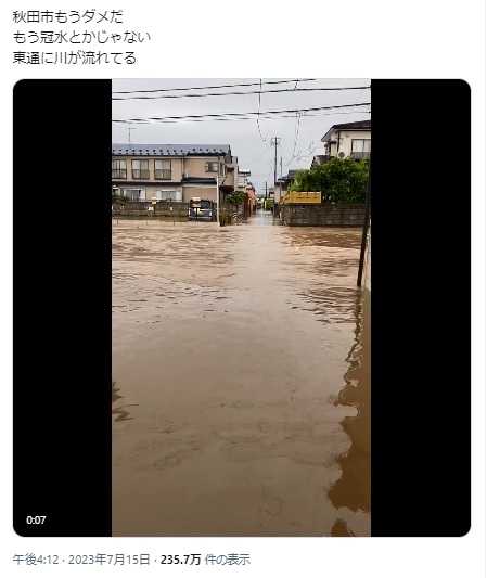 皆さまこんにちは。秋田が先週、「線状降水帯」による大雨で大規模な水害に見舞われました。自民党の「国土強靭化」、どこへ行ったんでしょうか?2017年の九州豪雨から、西日本豪雨、北海道、九州、そして秋田・・・とあちこちで水害だらけ。毎年一回はどこかが被害を受けてます。2017.7:九州北部豪雨2018.7:西日本豪雨2019.8:九州北部豪雨2020.7:令和2年豪雨(九州や中部地方など)2021.8:令和3年8月の大雨そして先週・・・その翌日、日本政府の首相は、被害が出た秋田県知事、市長ではなく韓国の水害についてお見舞いメッセージ・・・。豪雨で橋が崩れ落ちたところもあり、死者も出たのに・・・。秋田市を流れる太平川で「氾濫発生」 最大級の警戒呼びかけ(2023.7.15:NHK)SNSでは、「首相が国内にいても自治体からの要請がなければ動けないから仕方ないんじゃない?」という声もありましたが、翌日、7/16のニュース・・・12の河川氾濫、床上浸水350棟余り、秋田市はいまだ全容わからず…秋田県で記録的な大雨(2023.7.16:日テレ)そして・・・(画像クリックで河北新報の記事にリンクします)子供家庭庁に5兆円の予算でJリーグとコラボするんならその5兆円で被災地を助けてほしい。・・・と思う私はおかしいのでしょうか?こども家庭庁、予算5兆円で「Jリーグとコラボ」「育児経験語り」「子どもの意見聞きます」「優先レーン設置」の迷走ぶりに「解体しろ」の声この表をご覧ください。日本の食糧自給率で食糧生産の高い順です。秋田県は北海道に次ぐ全国2位。コロナのワクチン接種で、東北6県が軒並み接種率が高かった理由もここにありそうです。農業に従事するお年寄りを減らすためなのかと邪推してしまいます。ソース:https://code4fukui.github.io/covid19vaccine/ranking.html