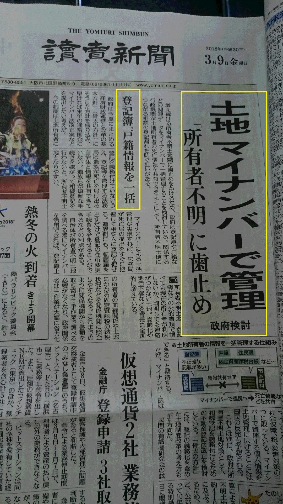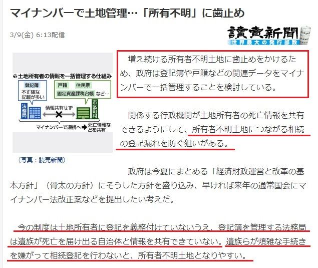 それならば、来日外国人や帰化人にマイナンバーを振って、日本の土地が不正に取得されないよう、