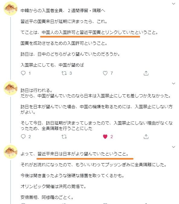 政府は5日、4月に予定していた中国の習近平(シー・ジンピン)国家主席の国賓としての来日を当面延期すると正式発表した 。日中両政府は新型コロナウイルスの感染拡大を受け、準備を円滑に進められないと判断した。感染症の収束状況や政治、外交日程を見極めて時期を再調整する。7~9月の東京五輪・パラリンピック後の秋以降が有力との見方がある。