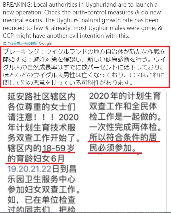 中共のジェノサイド(大量虐殺)のお知らせです。