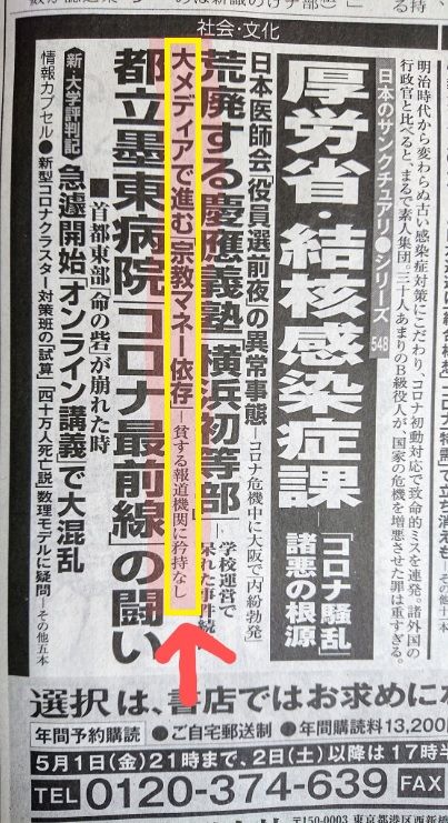 そこに触れないのは週刊誌に宗教マネーが流れているからだろうか??