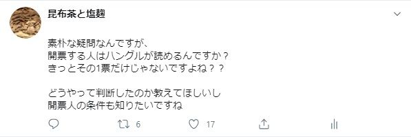 ツイートにも書いてますけど、ハングルの票ってこの1票だけじゃないと思います。