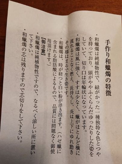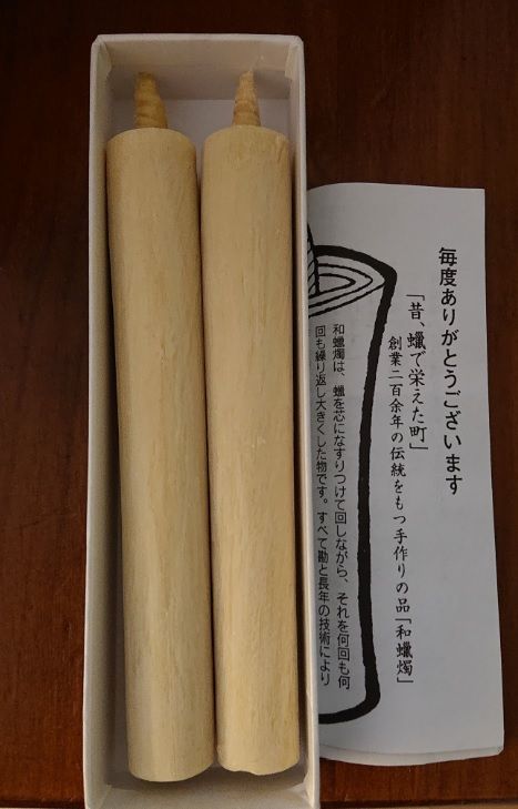 この和蝋燭は内子町の 大森和蝋燭屋 ​の作。