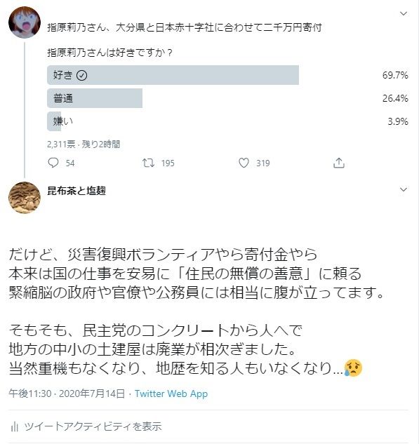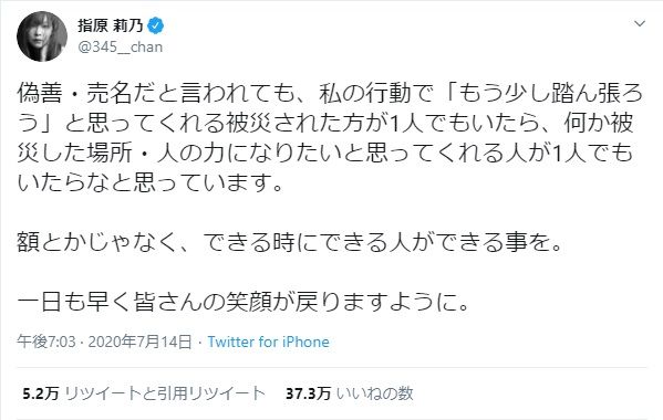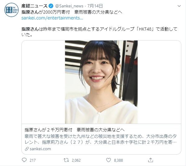 大分県と赤十字に2000万円寄付したことが話題になりました。