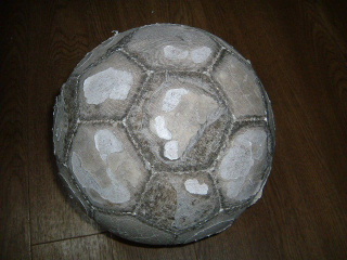 久しぶりに見るボールは、表面がすべて剥がれていて、六角形のくぼみで、辛うじてサッカーボールなんだ、とわかる程度です。
