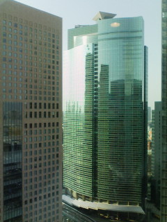 会社の窓から見える景色。ビルの窓が鏡になってて正面のビルが映ってるんですよね。思わず撮ってしまった。