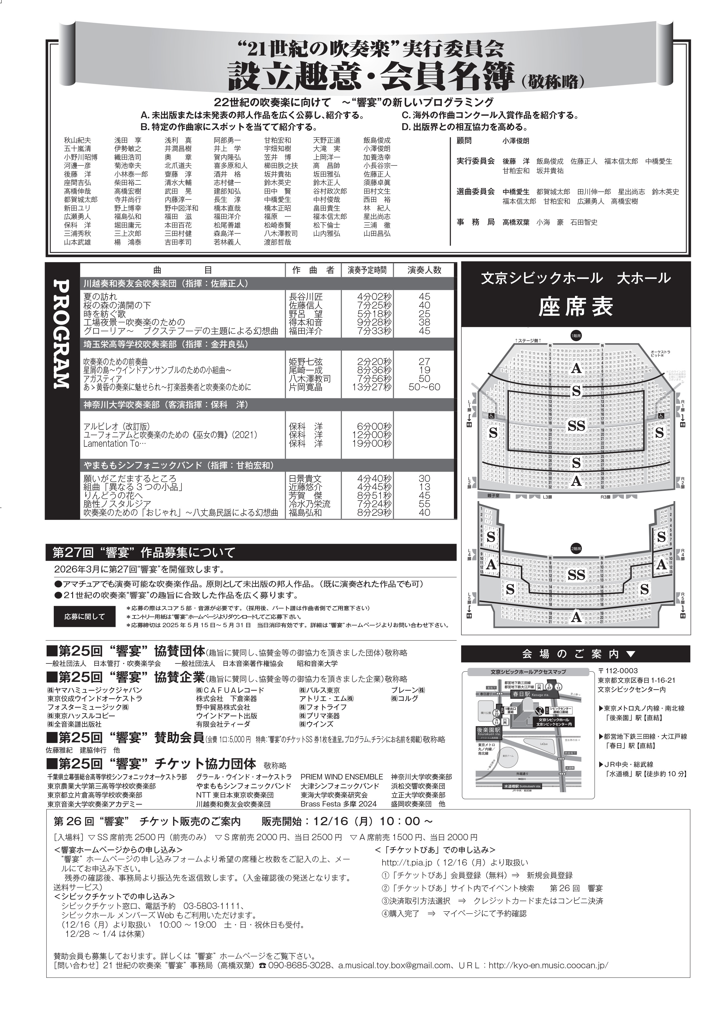 ■2025年3月16日(日)21世紀の吹奏楽 第26回“響宴”