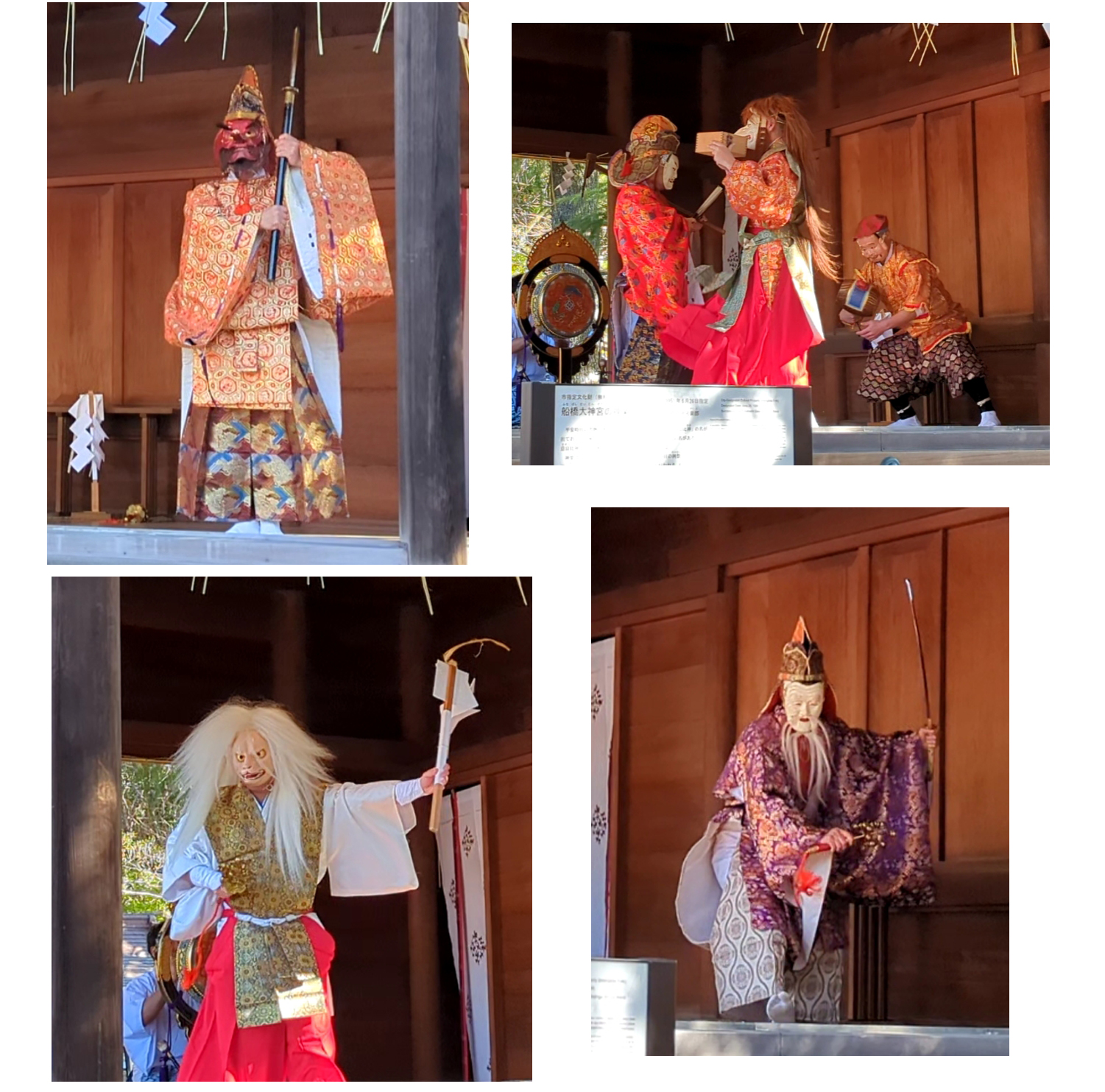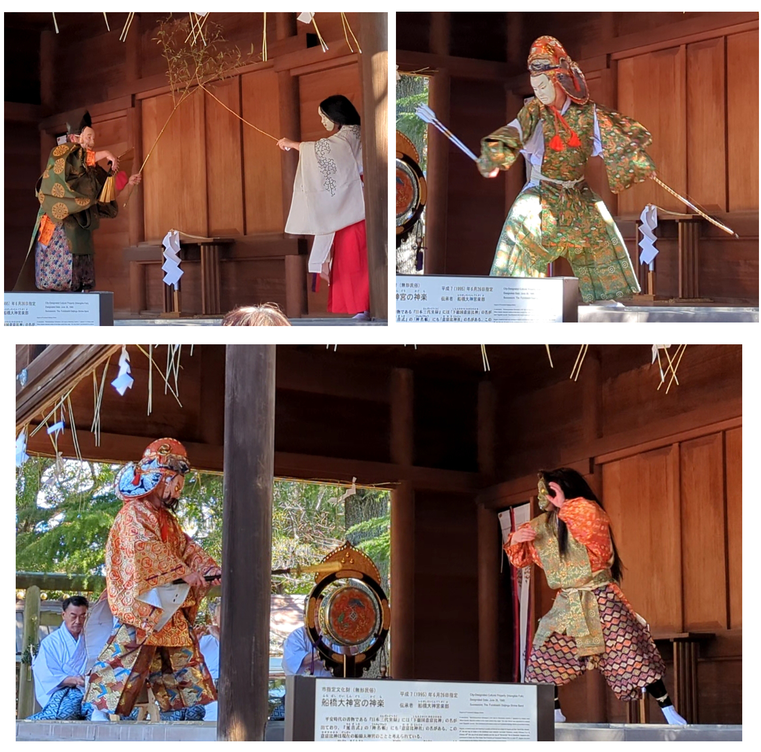屋台の食べ物を探しに広場へ移動すると、ちょうど神楽が始まる時間に!