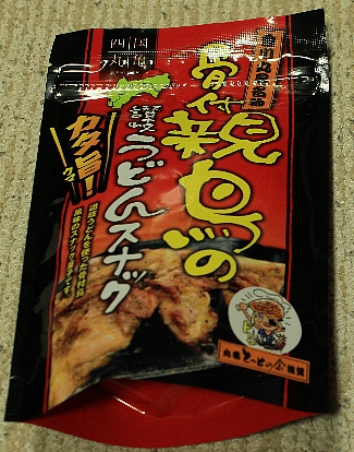 うわさのたまごバター餅は一気に残り3個となりましたwいくらでも食べれちゃう♪さて、道の駅でこんなお菓子を発見!骨付き親鳥のうどんスナック♪一応、うどんのような長めのスナックですが、親鳥の味付けをしています。香りはさほどでもありませんでしたが、食べてみると、胡椒が利いた親鳥の味が~~。しかも、スナックは親鳥らしく硬め。