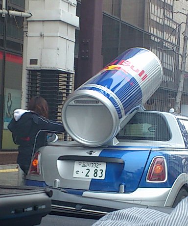 市外を走っているとこんな車が商店街の入り口で停車していました。何かの宣伝??