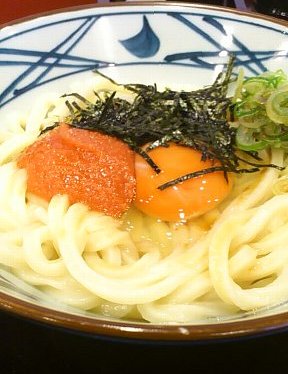 とはいえ、うどんの上に乗ってるだけですが一応、生卵と明太子です。薄口醤油をかけて混ぜて召し上がれ~~♪