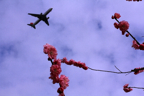 ちょうど梅の撮影していた公園の上空が飛行機の航路にあたるので、何も考えずに適当に梅とコラボw