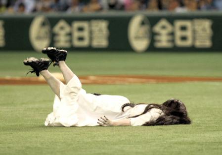 今日、東京ドームで行われた北海道日本ハムファイターズ対千葉ロッテマリーンズ戦で、貞子が始球式をしました怖いよ~(p>□