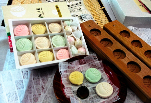 伝統の和三盆を「うどん県」の県章バッジにかたどった菓子が完成!!!「うどん県バッチ和三盆」として28日から発売。バッジ形が3個、丼をかたどったうどん形が6個、豆形が8個入っていて、お値段は1050円。高松空港や栗林公園などで買えますので、GWはうどん県に♪