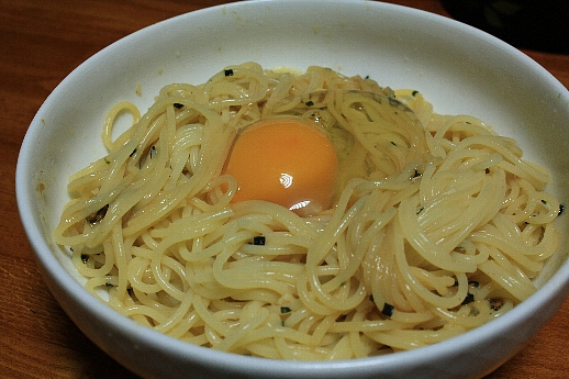 カルボナーラ。バター醤油。そして、本日、和風カレー味での試食。過去2回とも写真はほとんど色が変わっただけでおもしろみがないので、今日は写真は撮りませんでした。さて、肝心の味ですが、カレーのスパイスとしてはスパイシーさに欠ける。ってかねえ、スパを食べてるっていう感じがしなかった。別の麺を食べてるみたい。スパにカレーは合わないんだと思う。そういうことからすると、3種類の釜玉スパのうち、一番マシだったのは「バター醤油」っていうことになりました~。