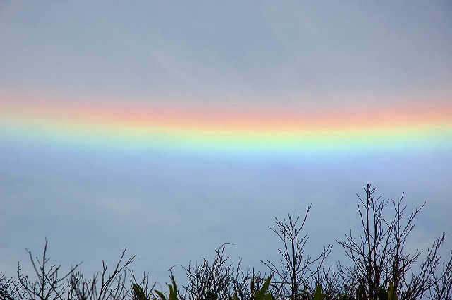 環水平アークをご存知でしょうか??めったに見ることが出来ない現象ですが、うどん県で環水平アークが観測されました!!これは、上空の氷の結晶の方向がほぼそろったときに、この結晶で屈折した太陽光により見える現象。虹とは違うんです。こういう感じ↓